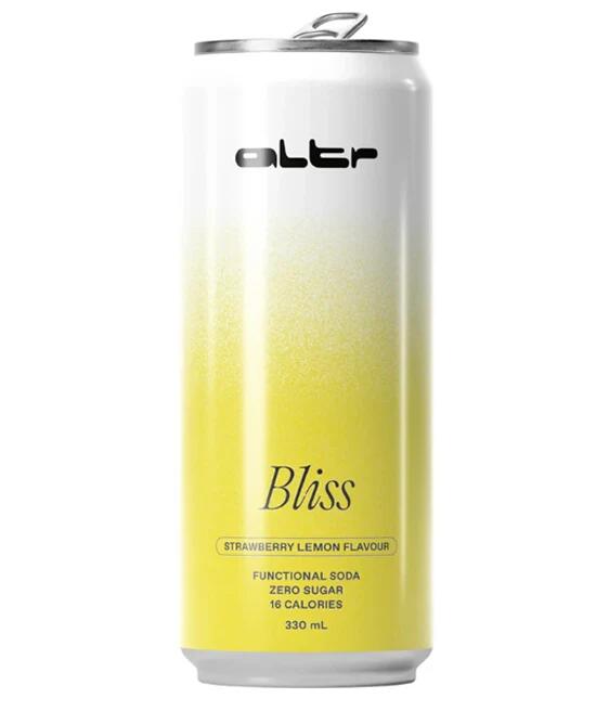 ALTR Bliss is a refreshing functional soda with a bright strawberry lemon twist, crafted to support gut health, hydration, and everyday wellbeing. Lightly fizzy and naturally uplifting, its designed to help you feel balanced, refreshed, and genuinely good from the inside out, without caffeine, sugar, or alcohol.