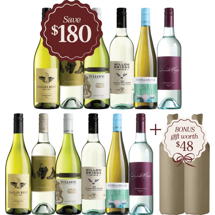 Classic Aussie Whites Dozen, Australia multi-regional Mixed White Wine Case, Wine Selectors