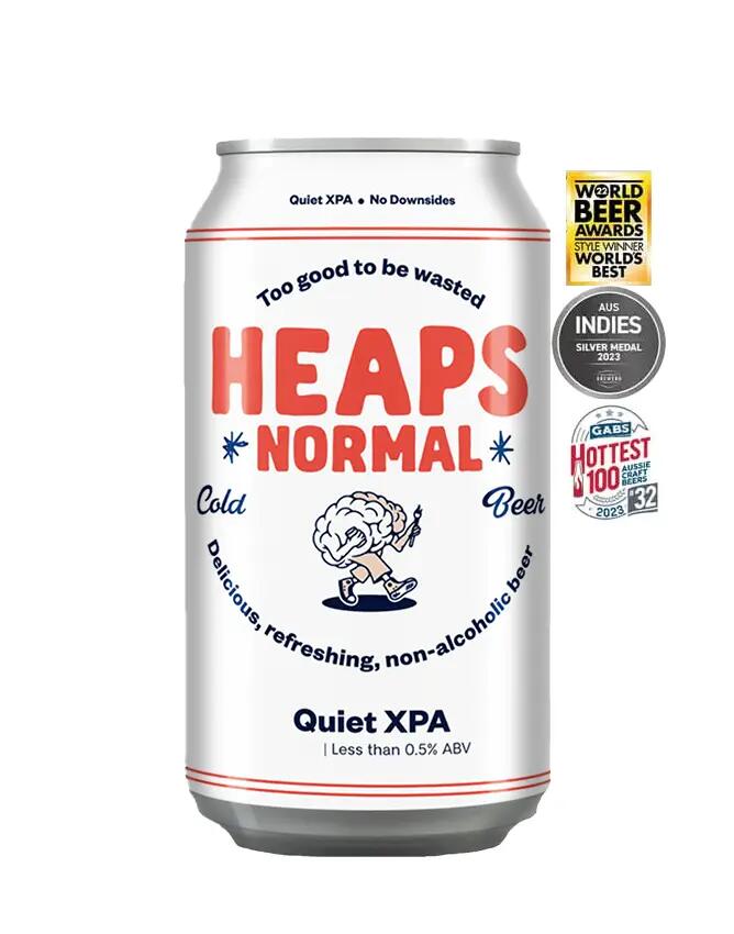 The Heaps Normal Quiet XPA is an independently brewed, unfiltered, and full-flavoured non-alcoholic beer. It boasts refreshing tropical and citrus aromas, balanced bitterness, and a subtle malt profile that culminates in a satisfying finish. Shop Now at Sans Drinks