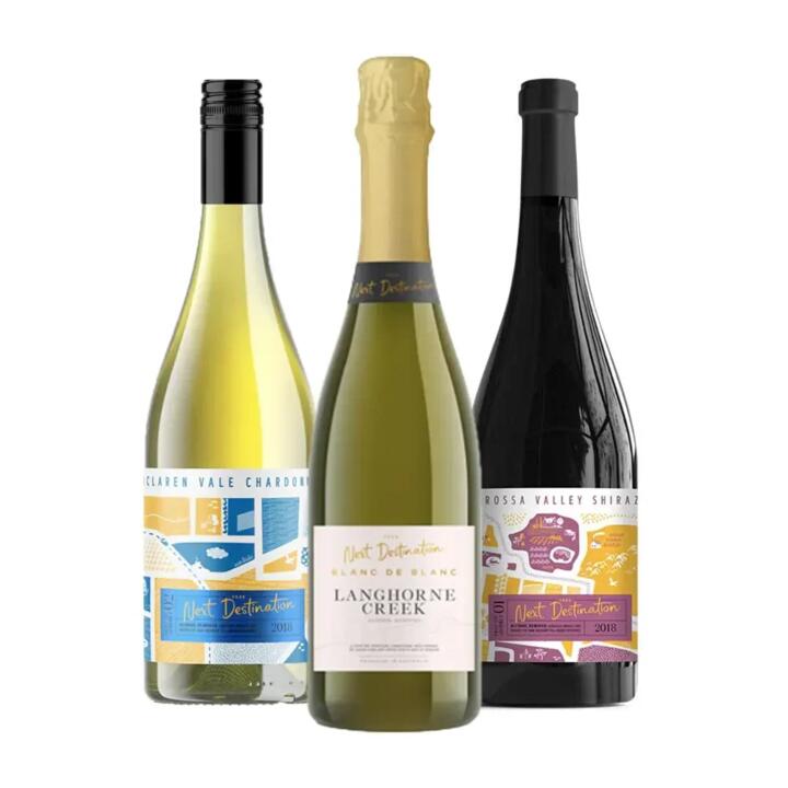 Brings the cellar door experience of iconic Australian wine regions to your doorstep with this pack of all 3 Next Destination premium non-alcoholic wines. The pack includes the best selling 2021 Langhorne Creek Blanc de Blanc, this non-alcoholic sparkling wine boasts a dry profile, aromas of lemon curd and citrus, and a crisp palate with flavours of toasted brioche, fresh blossom, and green apple the 2018 McLaren Vale Chardonnay, featuring a delicate, buttery mouthfeel and oak tannins and the famous big Barossa Valley Shiraz which delivers rich notes of dark chocolate, ripe berries, new French oak and complex layered tannins.
