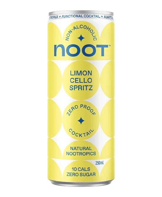 Noot Limoncello Spritz is bright, lively and citrus-forward, bursting with vibrant Sicilian lemon flavour. Sweet citrus notes meet tangy zest and fine bubbles for a refreshing spritz-style drink with a crisp, sparkling finish. Made with botanicals and Noots proprietary nootropic blend, its designed for relaxed, feel-good moments and easy social enjoyment, without alcohol.Perfect for sunny afternoons, light aperitif moments or whenever you want something fresh, sparkling and alcohol-free.What Makes It FunctionalThis functional non-alcoholic drink blends botanicals and nootropics to
